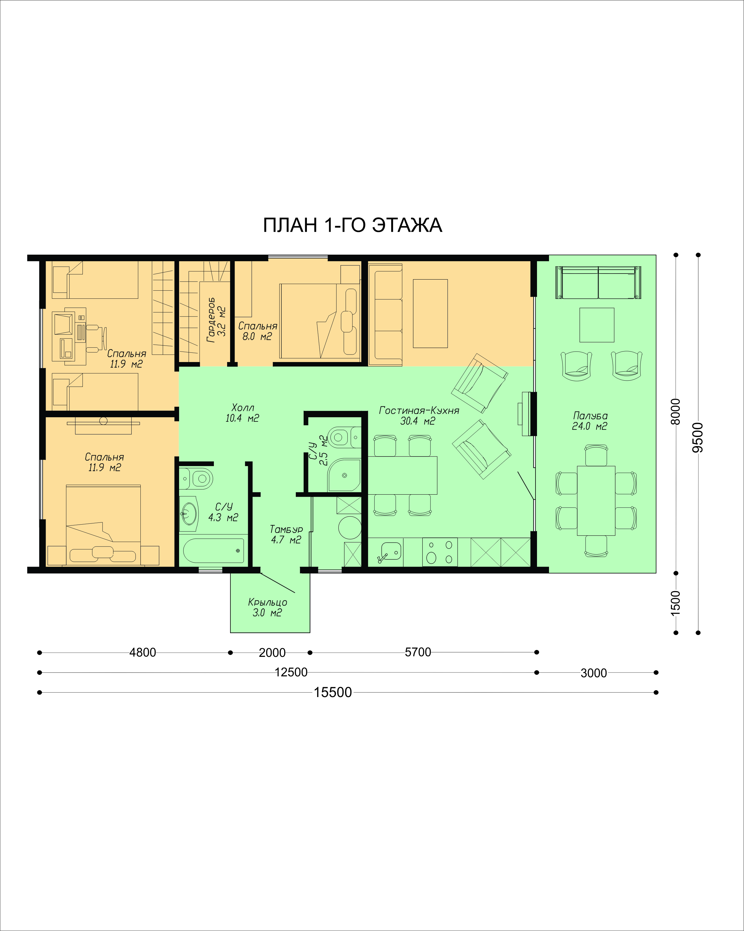 | Покрытие пола 1 этажа | Влагостойкая фанера ФСФ 21 мм с герметизацией стыков | + | + | |