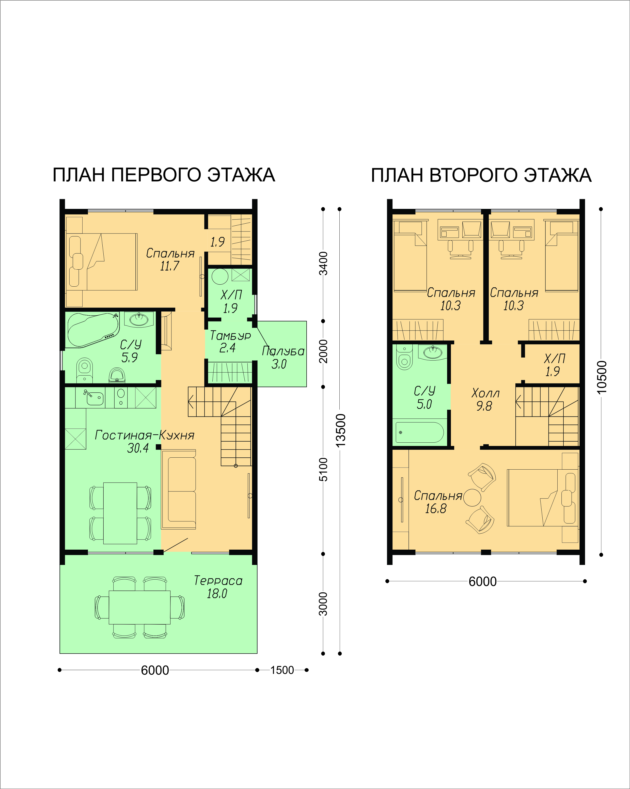 | Покрытие пола 2 этажа | Влагостойкая фанера ФСФ 21 мм с герметизацией стыков | + | + | |