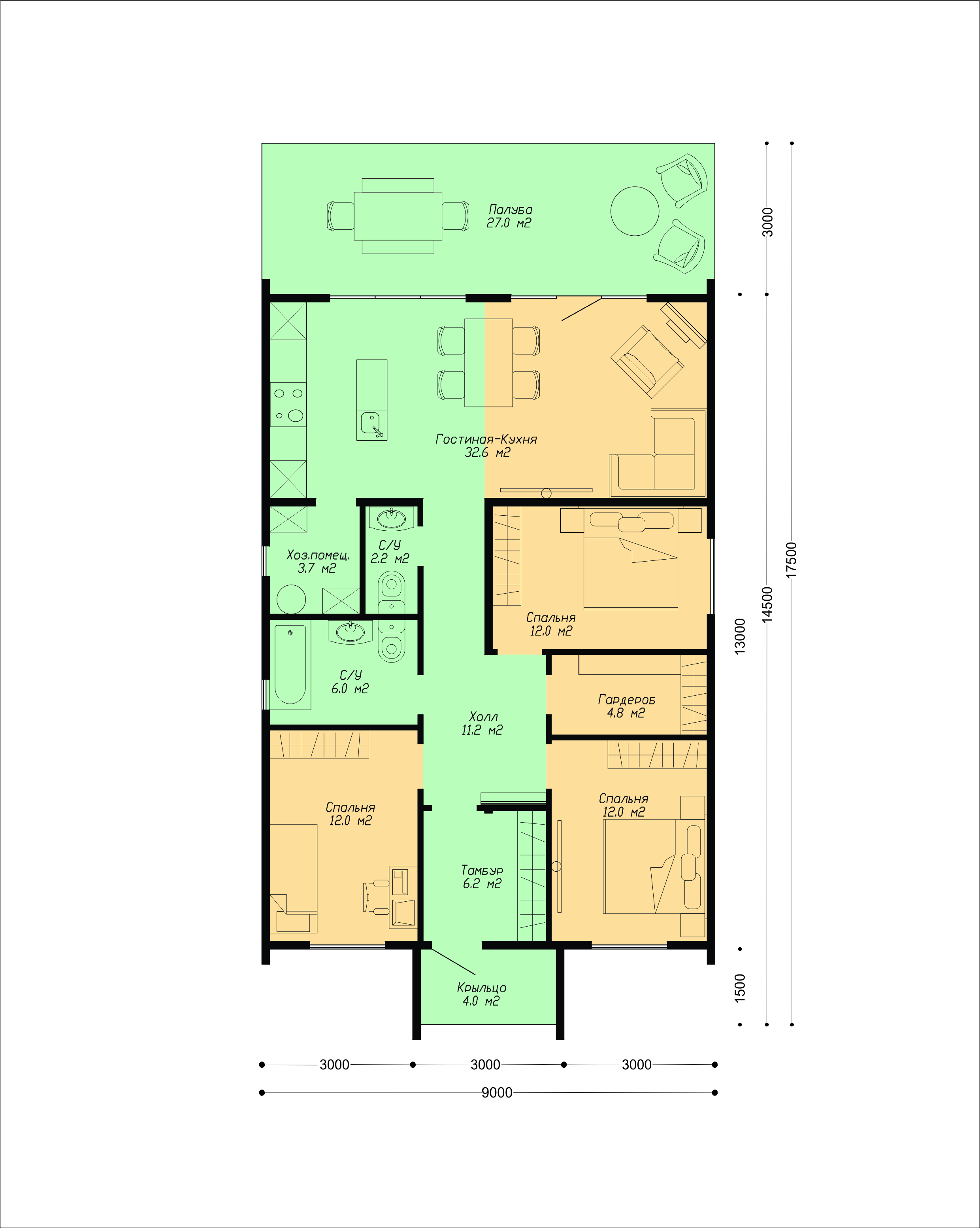 с примерной расстановкой мебели