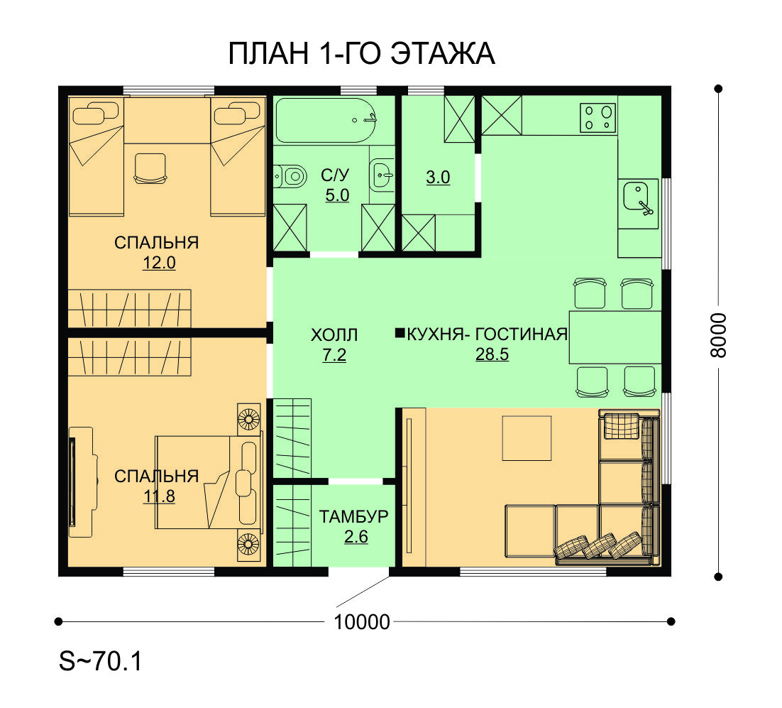 | Кровля | Металлочерепица, супердиффузионная мембрана ИЗОСПАН AQ, контробрешётка брус 30*40 мм, обрешётка доска 95-100*25 мм | + | + | + |