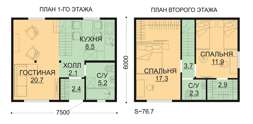 | Покрытие пола 1 этажа | Влагостойкая фанера ФСФ 21 мм с герметизацией стыков | + | + | + |