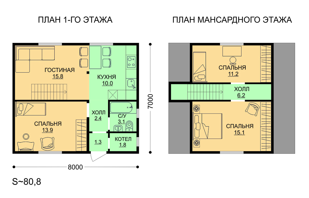 Площадь дома 81 м2 Цена дома 2 879 000 руб.