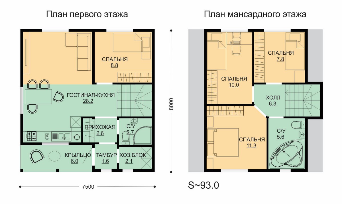 | Кровля | Металлочерепица, супердиффузионная мембрана ИЗОСПАН AQ, контробрешётка брус 30*40 мм, обрешётка доска 95-100*25 мм | + | + | + |
