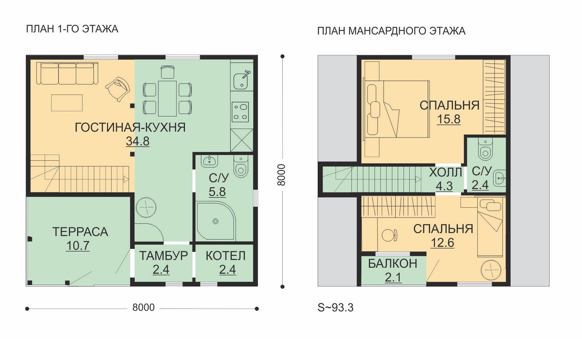 | Кровля | Металлочерепица, супердиффузионная мембрана ИЗОСПАН AQ, контробрешётка брус 30*40 мм, обрешётка доска 95-100*25 мм | + | + | + |