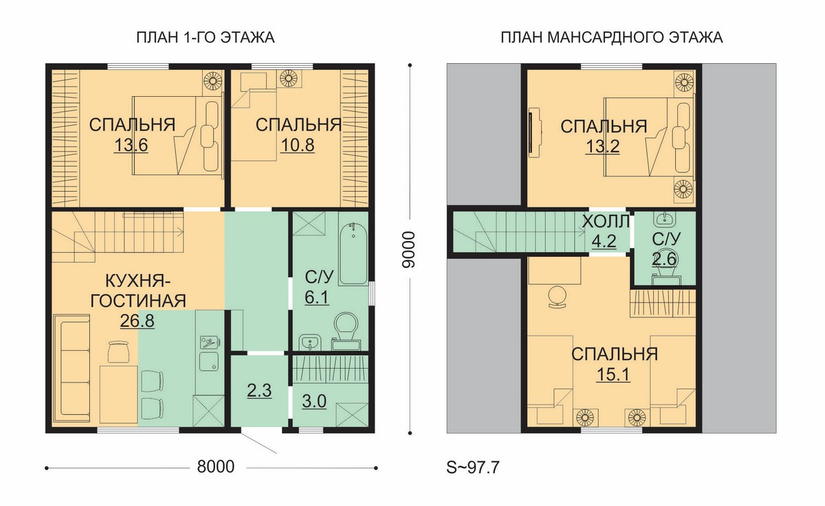 | Кровля | Металлочерепица, супердиффузионная мембрана ИЗОСПАН AQ, контробрешётка брус 30*40 мм, обрешётка доска 95-100*25 мм | + | + | + |