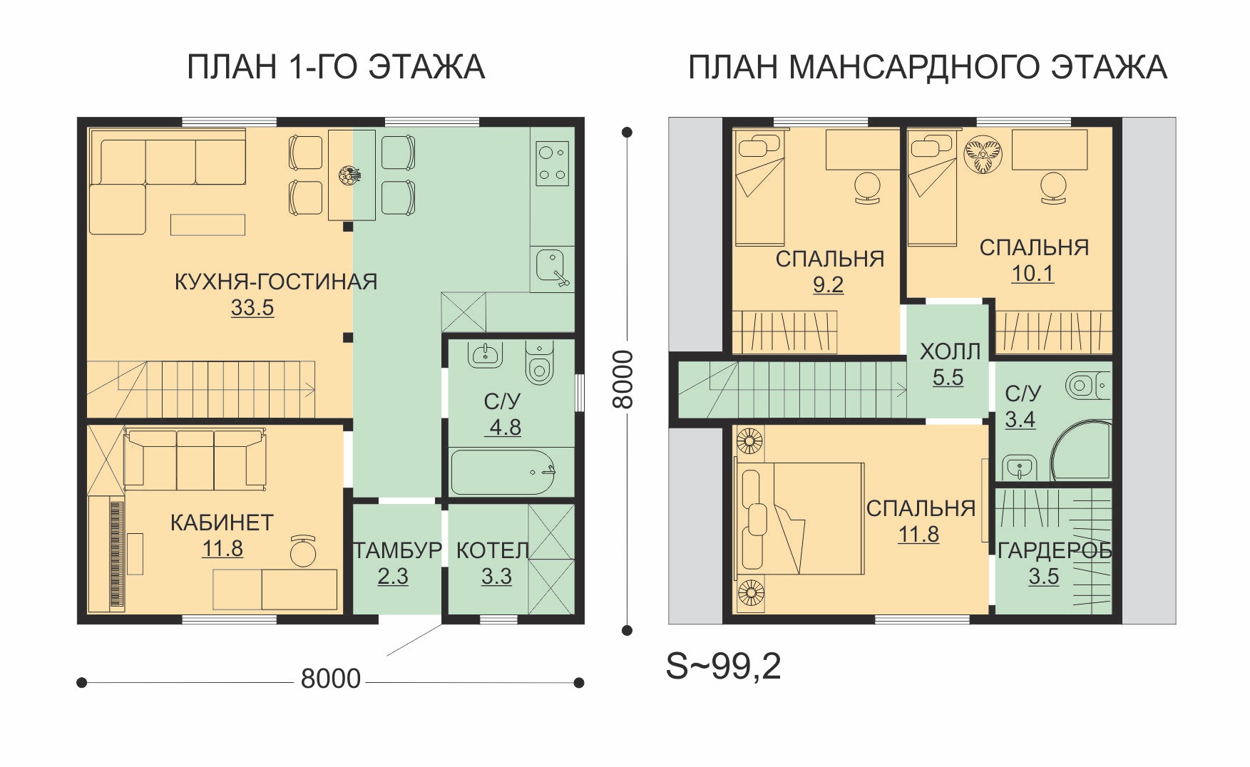 | Кровля | Металлочерепица, супердиффузионная мембрана ИЗОСПАН AQ, контробрешётка брус 30*40 мм, обрешётка доска 95-100*25 мм | + | + | + |
